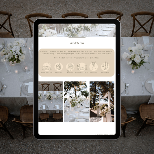 Hier bekommst du eine Schritt-für-Schritt-Anleitung für dein Dekorationskonzept, inklusive direkter Verlinkungen zu hochwertigen Dienstleistern, Inspirationen und praktischen Tipps, um dein Dekorationskonzept perfekt umzusetzen.