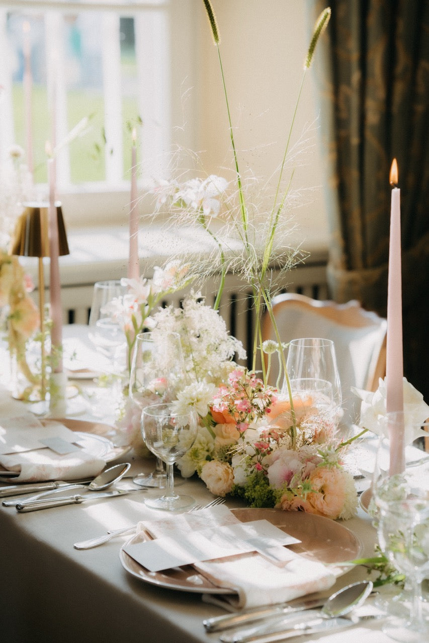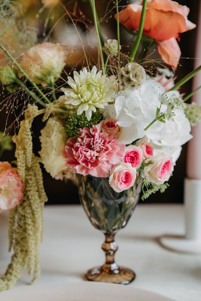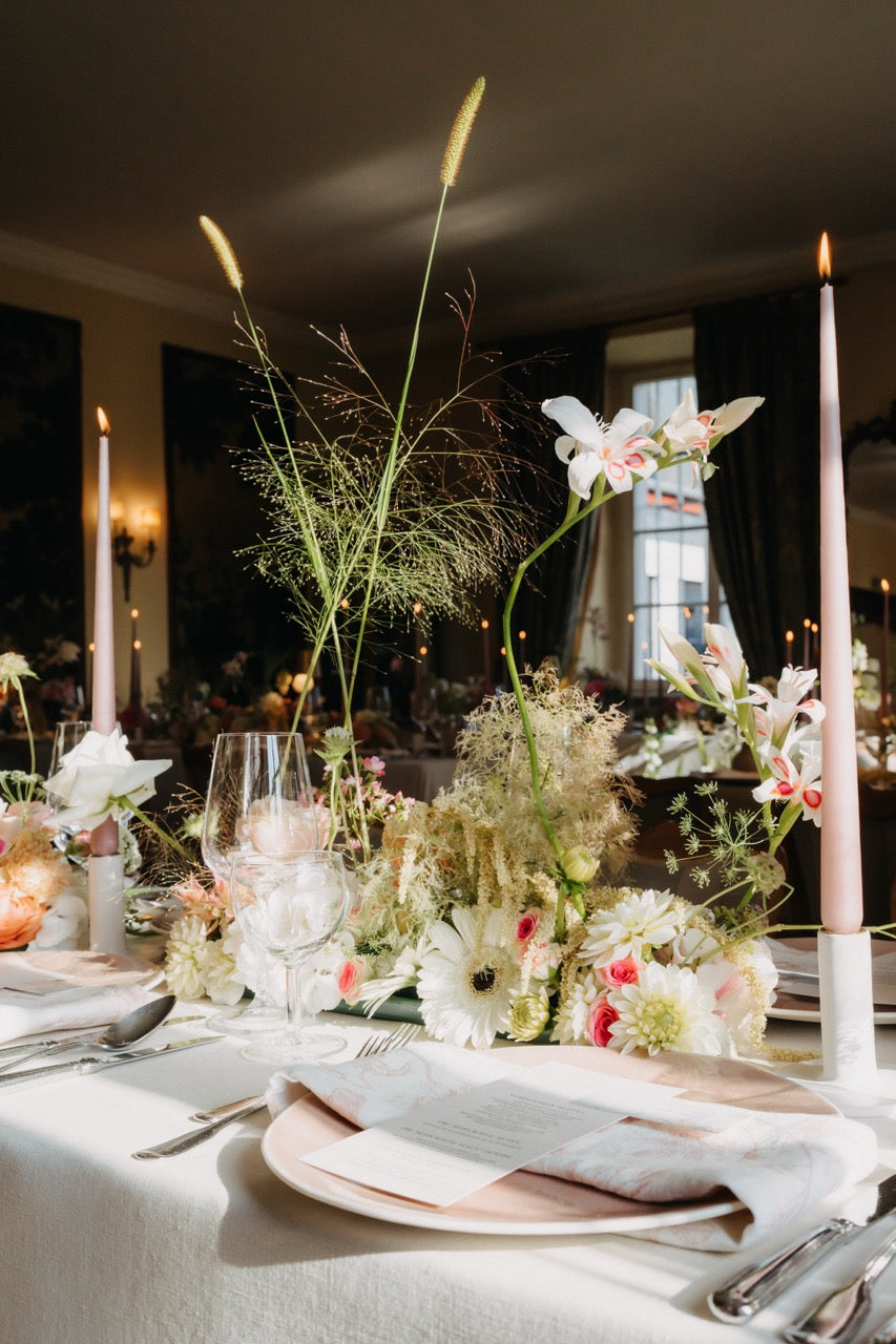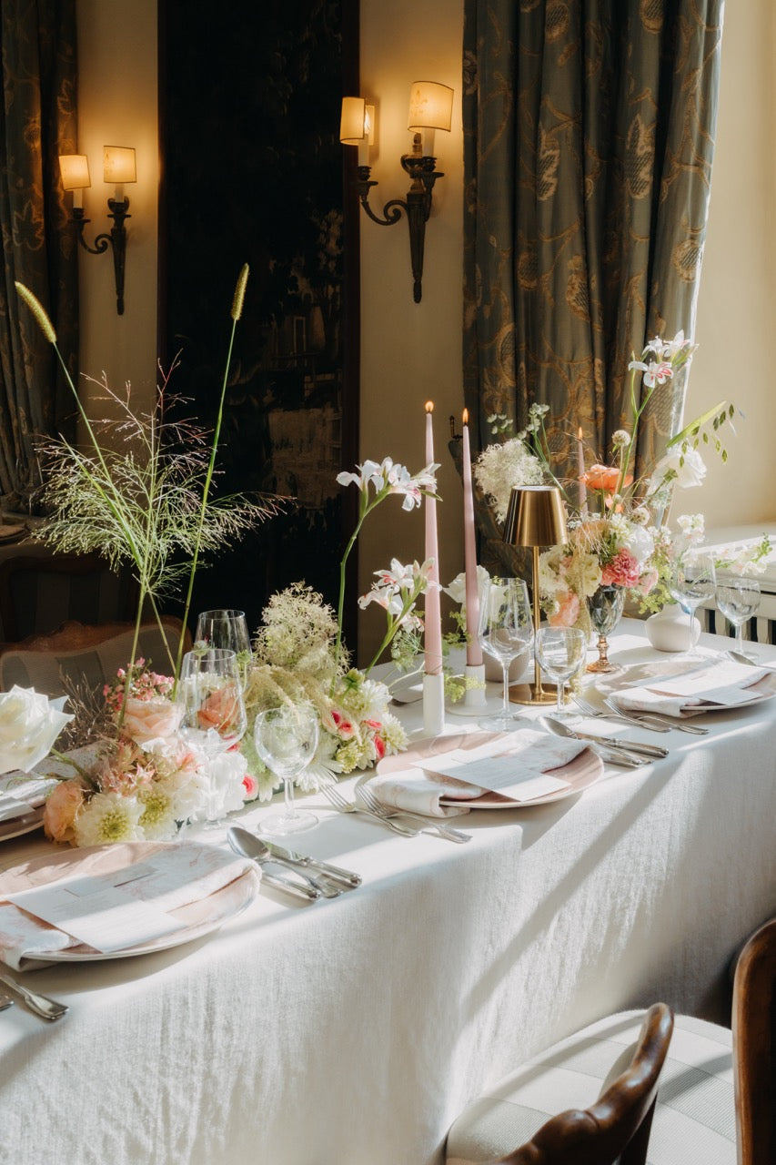 Dieses Konzept vermittelt ein Gefühl von raffinierter Romantik und sorgt durch die Kombination aus alten klassischen Stilmitteln und modernen, klaren Akzenten für eine inspirierende Harmonie. Es wirkt gleichzeitig verträumt und edel, schafft eine festliche und zugleich intime Atmosphäre und bleibt dennoch in seiner Eleganz angenehm zurückhaltend. Es ist ideal für Brautpaare, die sich eine elegante und harmonische Hochzeit wünschen, bei der klassische Elemente auf eine moderne, frische Interpretation treffen. Perfekt für Feiern in historischen Villen, Gewächshäusern oder unter freiem Himmel, spricht es Paare an, die Wert auf Ästhetik, Tradition und eine warme, einladende Atmosphäre legen.