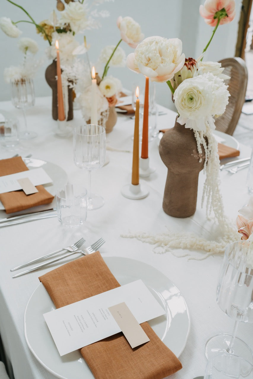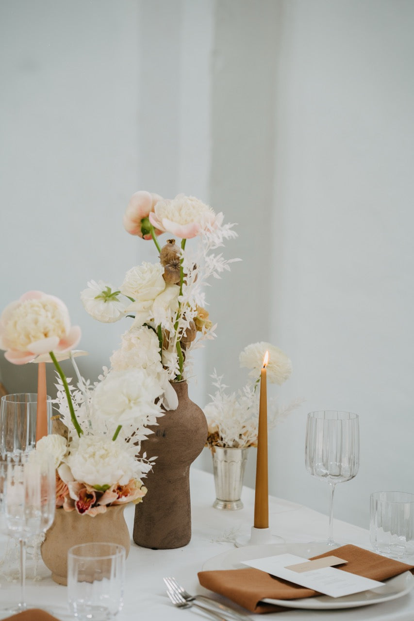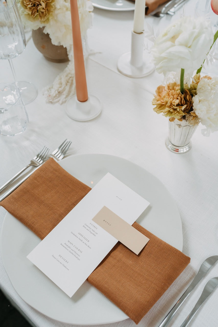 Mocca entfaltet eine warme und moderne Ästhetik mit Nuancen in Nude, Toffee und sanften Erdtönen. Die Gestaltung wirkt ruhig, einladend und elegant mit einem klaren Designverständnis und hochwertigen Details. Feine Materialien, harmonisch abgestimmte Farben und reduzierte, aber wirkungsvolle Floristik schaffen eine Atmosphäre voller Wärme und Stil. Das Konzept lebt von der Balance zwischen zurückhaltender Natürlichkeit und moderner Raffinesse. Es eignet sich perfekt für alle, die ein stilvolles und zeitgemäßes Setting mit sanfter Tiefe und Charakter suchen.