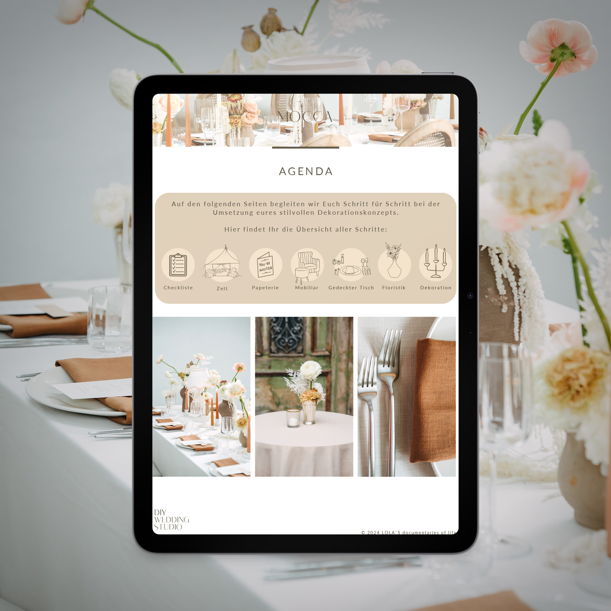 - Ein vollständig ausgearbeitetes Hochzeits-Dekorationskonzept zum Nachmachen